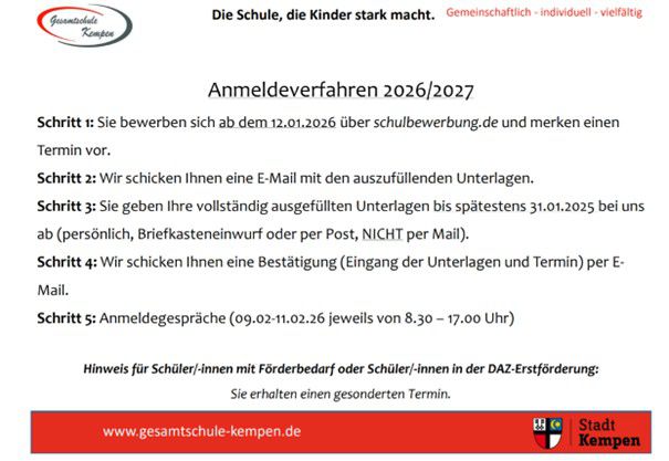 Informationen zum Anmeldeverfahen 2026/2027
