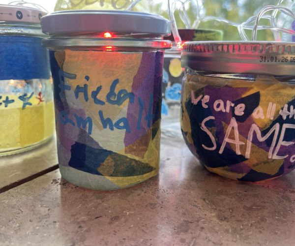 Verschiedene kreative und spielerische Aktionen sorgten für einen gelungenen Einstieg: Einige Gruppen wagten sich mutig an den Yenga-Turm und lernten dabei erste Elemente des Klassenbuildings kennen. Andere stimmten sich musikalisch mit einer ersten Klassenhymne auf die gemeinsame Zeit ein. Das neue Klassentier "Balu" hieß die Klasse 5b herzlich willkommen.